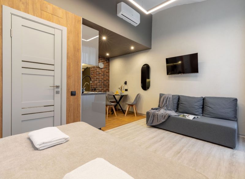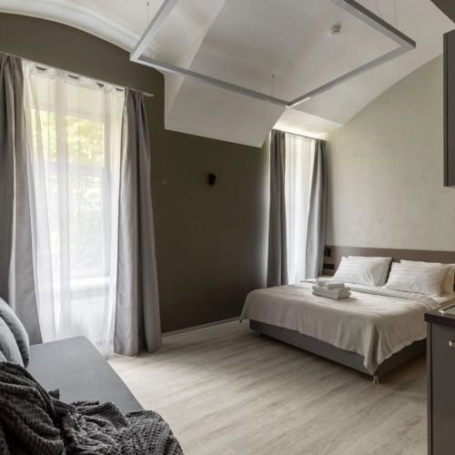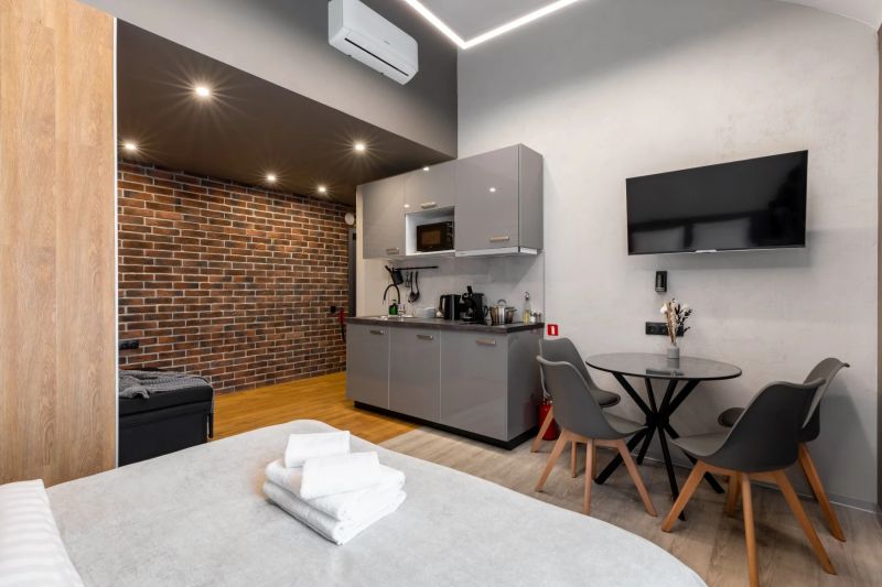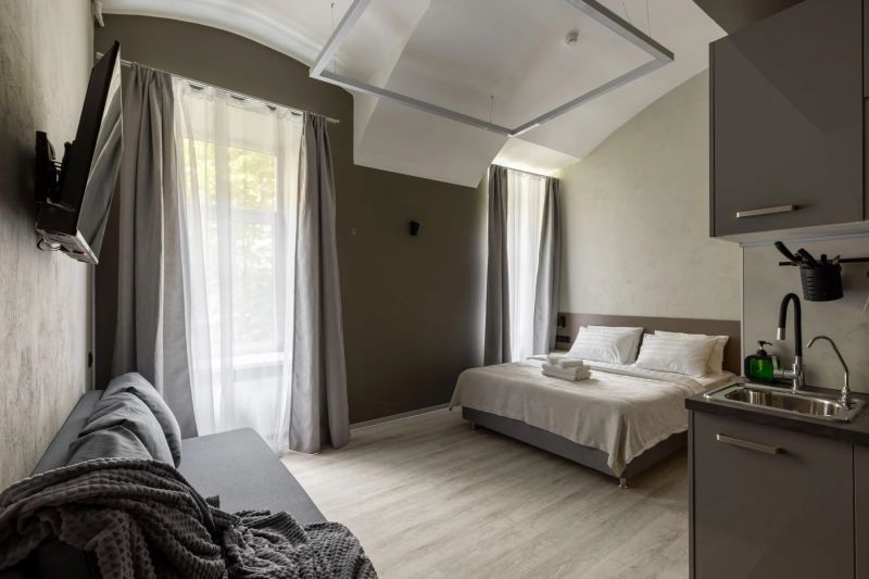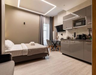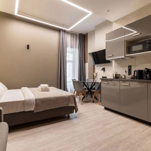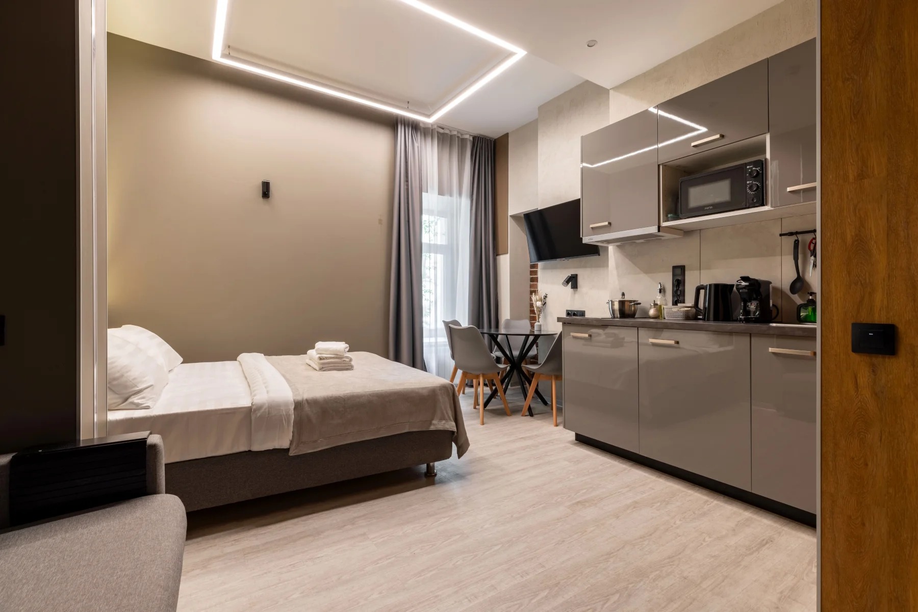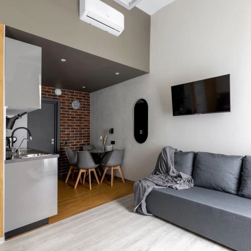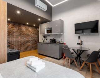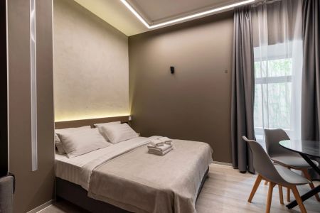 Уютные апартаменты с отличной звукоизоляцией вместимостью для 1-4 гостей оборудованные всем необходимым для комфортного проживания: кондиционер, холодильник, плита, микроволновая печь, кофе машина. Апартаменты разместились в тихом и спокойном дворе на 1 этаже с видом во двор.