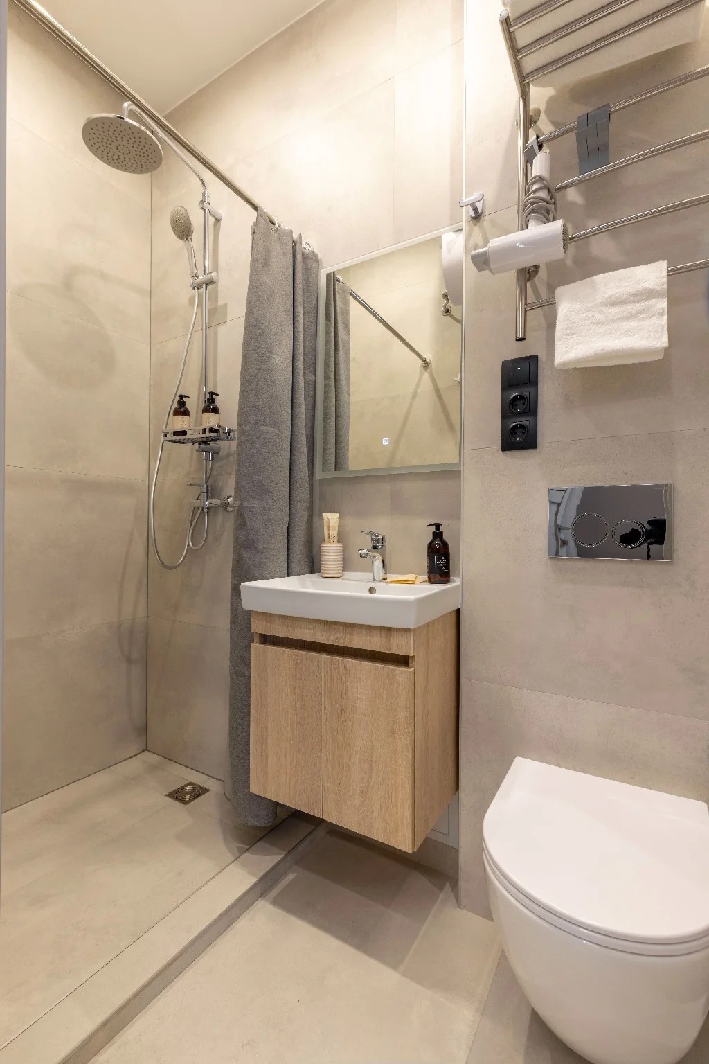 - Санузел: с душем, тапочки, теплый пол, туалетные принадлежности, фен